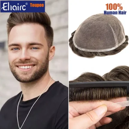 Cabelo Humano Masculino Peruca Mono Laço Base do P…