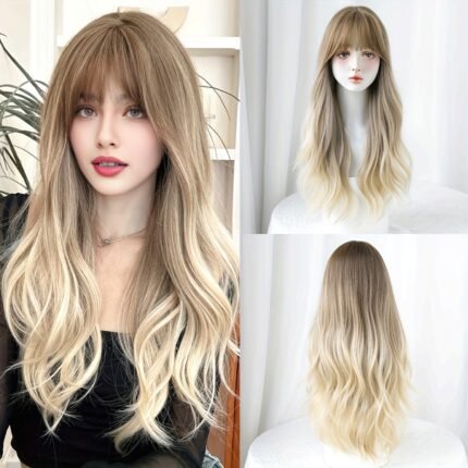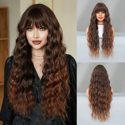 7jhh Wigs Peruca Feminina Longa e Ondulada Com Fra…