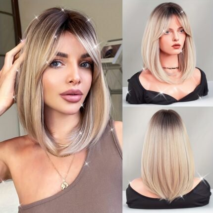 Cabelo Curto e Liso Estiloso Em Um Tom Dourado Cla…