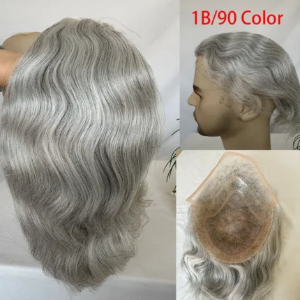 Peruca de Cabelo Humano para Homens, Sistema Europ…
