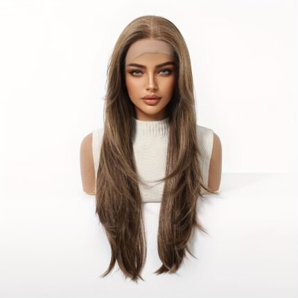 Peruca de Renda Frontal Longa, Marrom, Elegante, E…