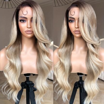 Peruca de Renda Ondulada Dourada Degradê 13×4…