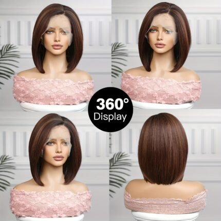 Peruca Curta Reta Bob Frente do Laço Perucas de Ca…