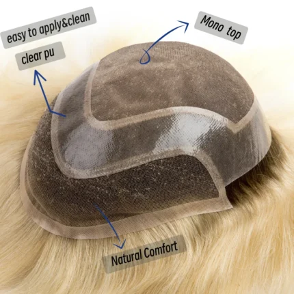 Prótese de Cabelo Masculino Mono Renda Base Pu Per…