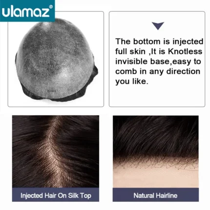 Topper Masculino Base de Seda Peruca Superior Rend…