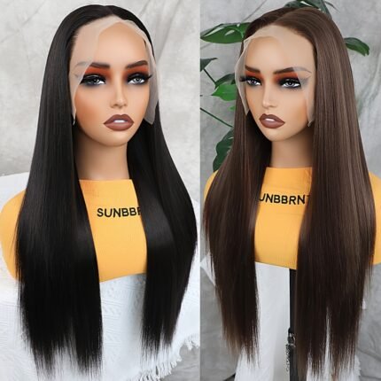 Perucas Sintéticas Pretas de Renda para Mulheres, …