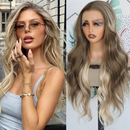 Perucas Lace Front Onduladas Com Mechas Castanho-a…