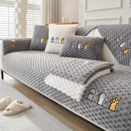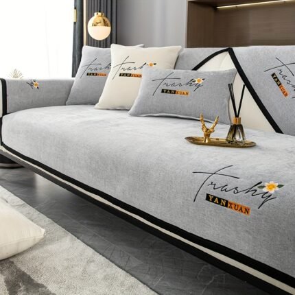 Capa de Sofá de Veludo Tipo Favo de Mel Com Bordad…