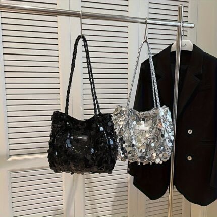 Bolsa Feminina de Ombro Elegante Com Glitter, Fech…
