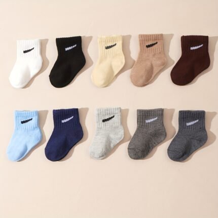 10 Pares de Meias Curtas de Cor Sólida para Bebês.…