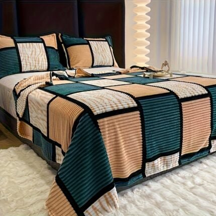 Manta de Veludo Com Estampa Geométrica Xadrez, Ide…