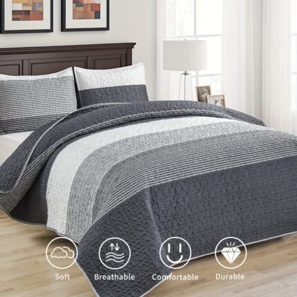 Conjunto de Colcha Acolchoada Cinza-Escura de 3 Pe…