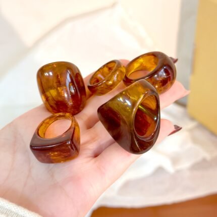 5 Anéis Elegantes de Resina Cor Âmbar, Design Excl…