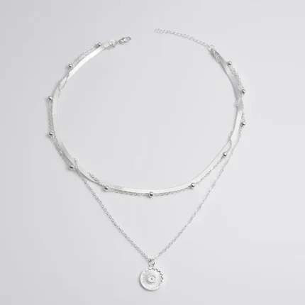 925 Prata Esterlina Três Camadas Redonda Colar Sim…