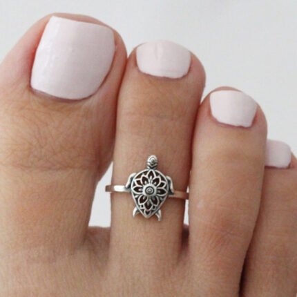 Anel de Dedo do Pé Ajustável Com Flor Prateada, Es…