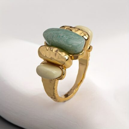 Anel Elegante Com Pedra Natural Colorida e Inspira…