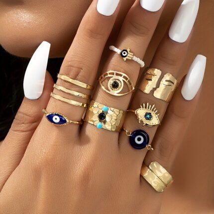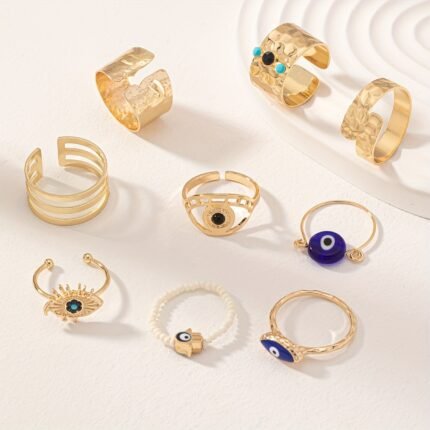 9 Peças de Anéis Vintage Empilháveis com Design …