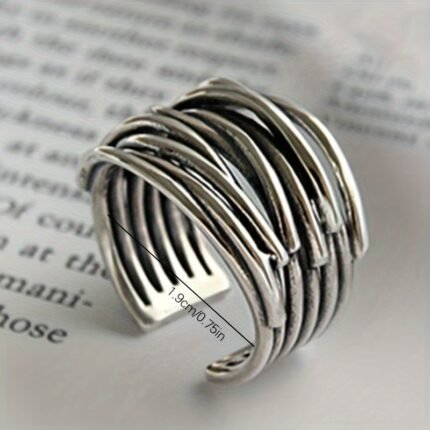 Anéis de Onda Geométrica Vintage p/ Mulheres, Aço …