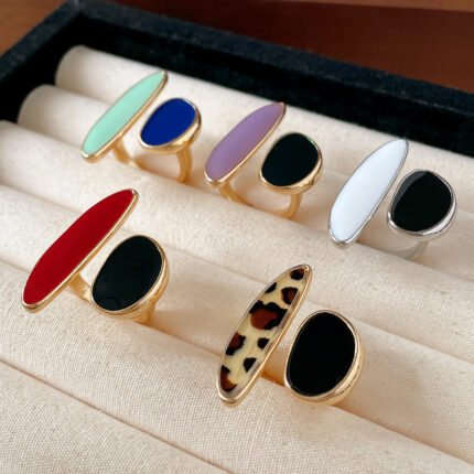 Anel Feminino Elegante Em Liga de Zinco Com Esmalt…