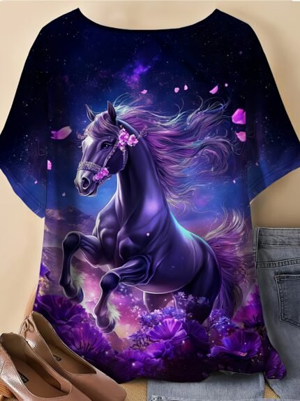 Camiseta Feminina Plus Size Casual, Modelagem Solt…