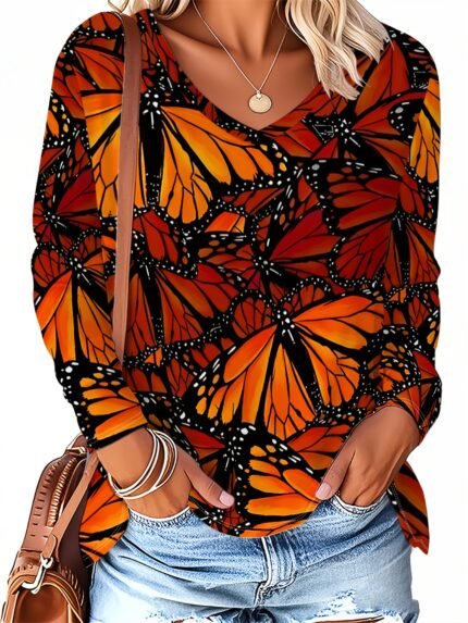 Camiseta Feminina de Manga Comprida Com Estampa Y2…