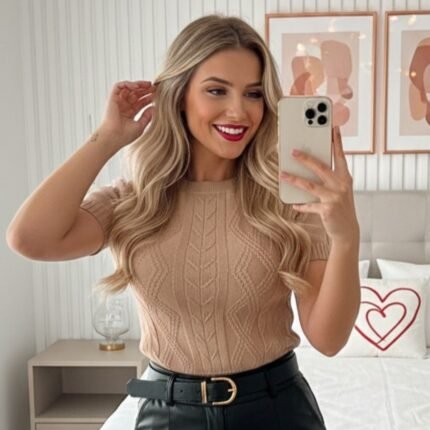 Blusa Tricot Modal Relevo Manga Curta [F081]