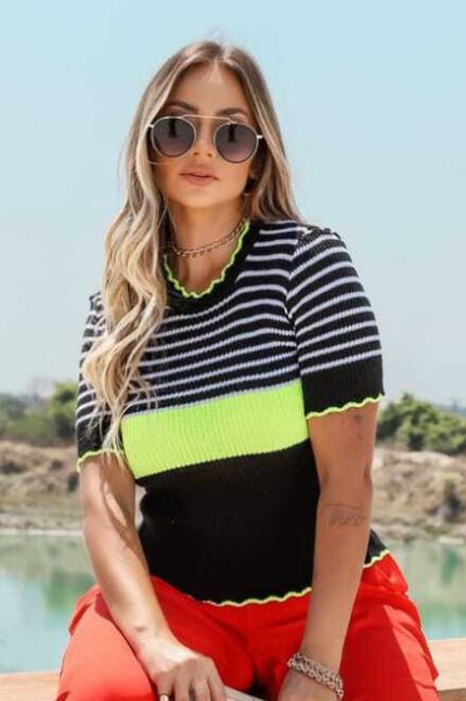 Blusa Tricot Listras Na Manga [F081]