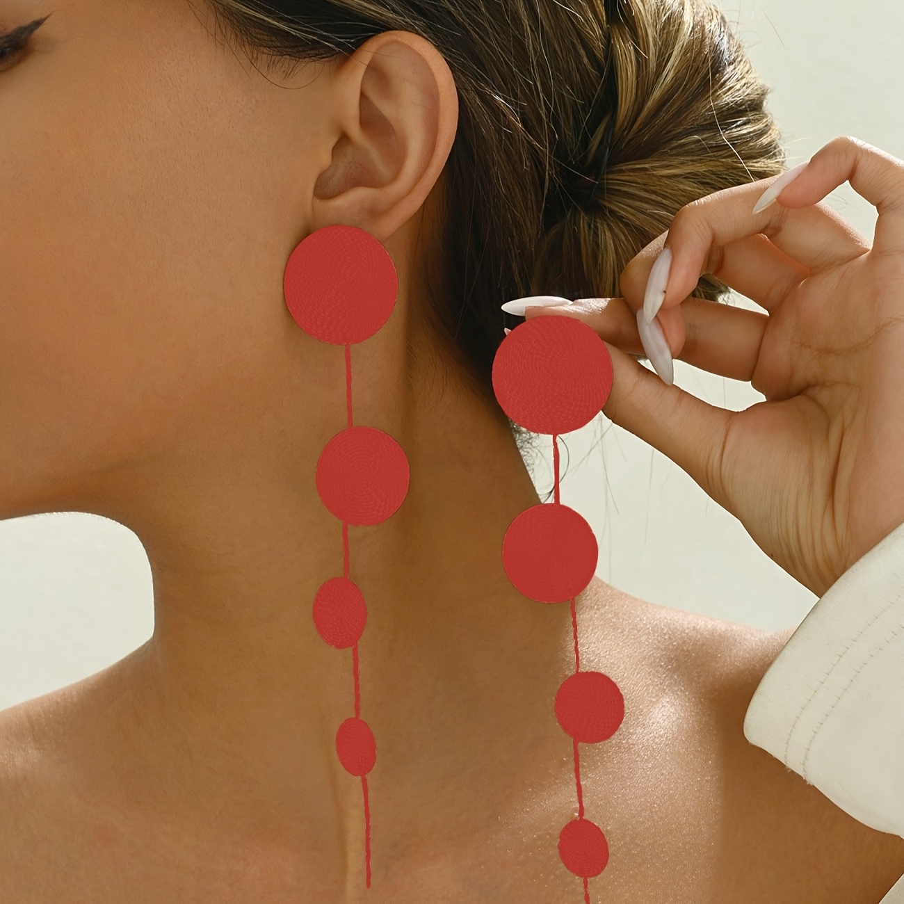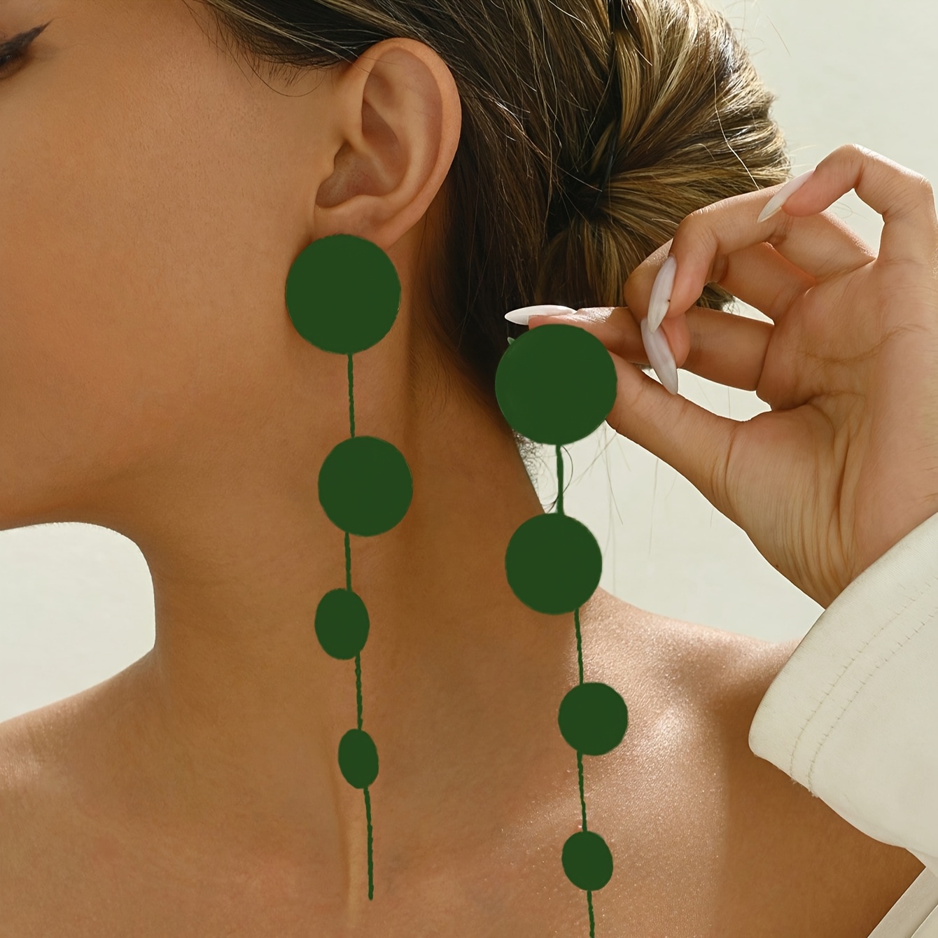 1 Par de Brincos Longos Pretos Circulares Pendentes - Design Retrô Boêmio Ousado e Elegante para Mulheres, Perfeito para Looks Casuais ou Festas, Acessórios para Festas | Joias Elegantes | Acabamento Texturizado, Brincos Divertidos.