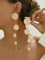 Início Vestuário e Acessórios Bijouterias 1 Par de Brincos Longos Pretos Circulares Pendentes – Design Retrô Boêmio Ousado e Elegante para Mulheres, Perfeito para Looks Casuais ou Festas, Acessórios para Festas | Joias Elegantes | Acabamento Texturizado, Brincos Divertidos.