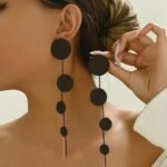 1 Par de Brincos Longos Pretos Circulares Pendentes – Design Retrô Boêmio Ousado e Elegante para Mulheres, Perfeito para Looks Casuais ou Festas, Acessórios para Festas | Joias Elegantes | Acabamento Texturizado, Brincos Divertidos.