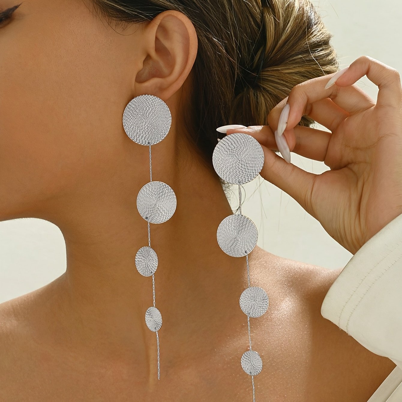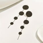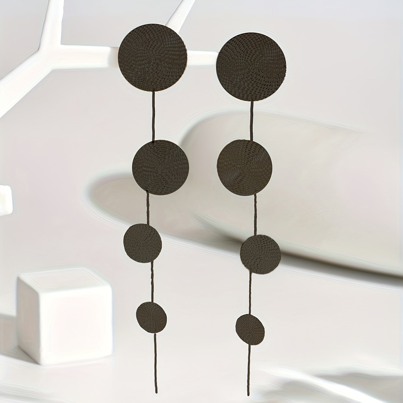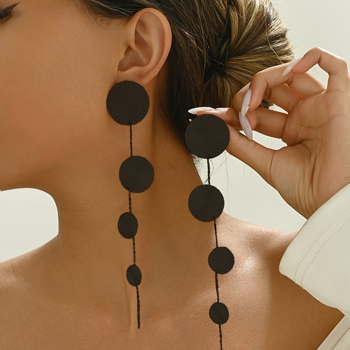 1 Par de Brincos Longos Pretos Circulares Pendentes - Design Retrô Boêmio Ousado e Elegante para Mulheres, Perfeito para Looks Casuais ou Festas, Acessórios para Festas | Joias Elegantes | Acabamento Texturizado, Brincos Divertidos.