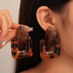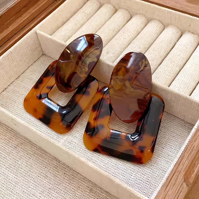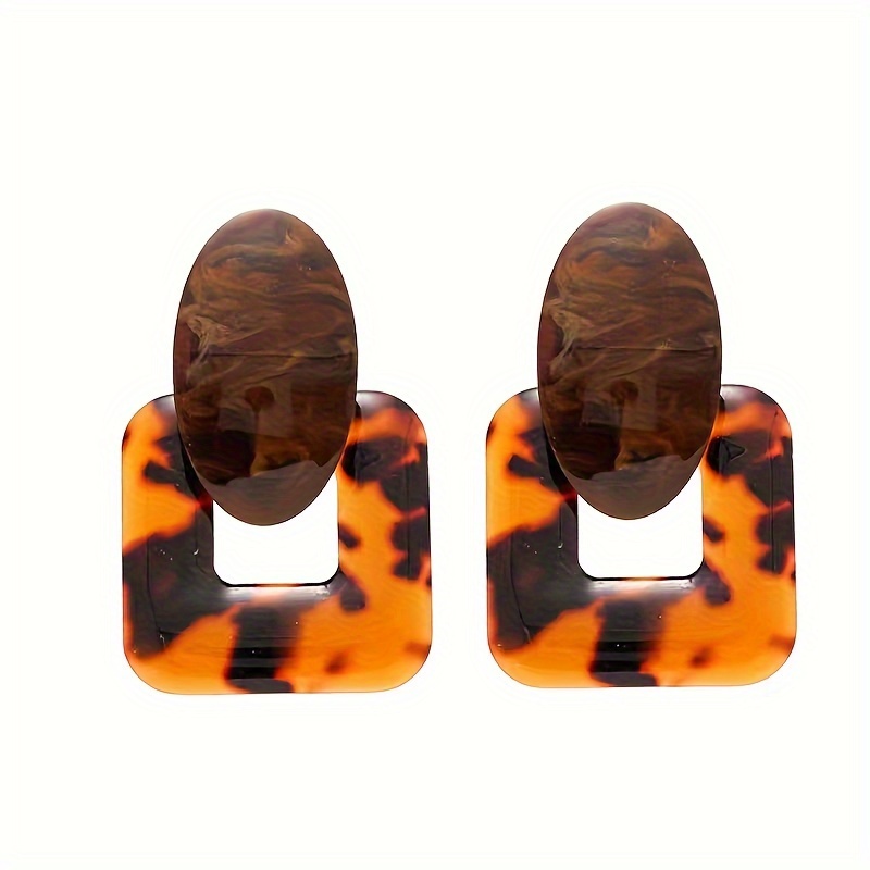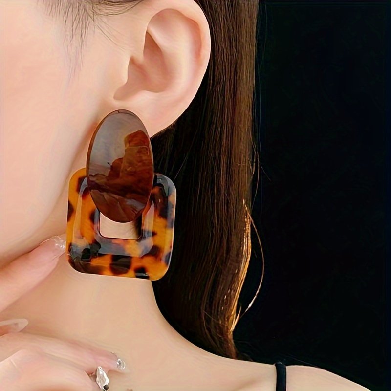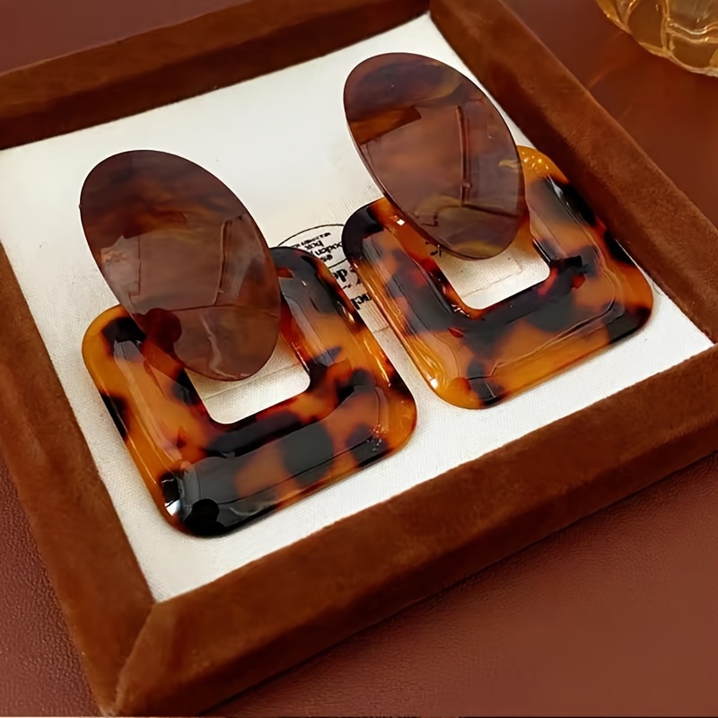 Início Vestuário e Acessórios Bijouterias 1 Par de Brincos Quadrados Vintage Sensuais Com Estampa de Leopardo Em Resina, Banhados a Ouro 18k, Em Liga Metálica e Prata 925, Brincos Pendentes da Moda para Mulheres, Acessório para Todas as Estações, Ideal para Uso Diário e Em Festas.