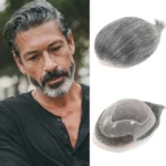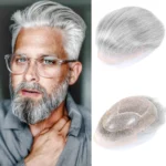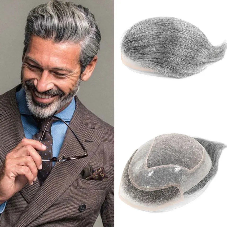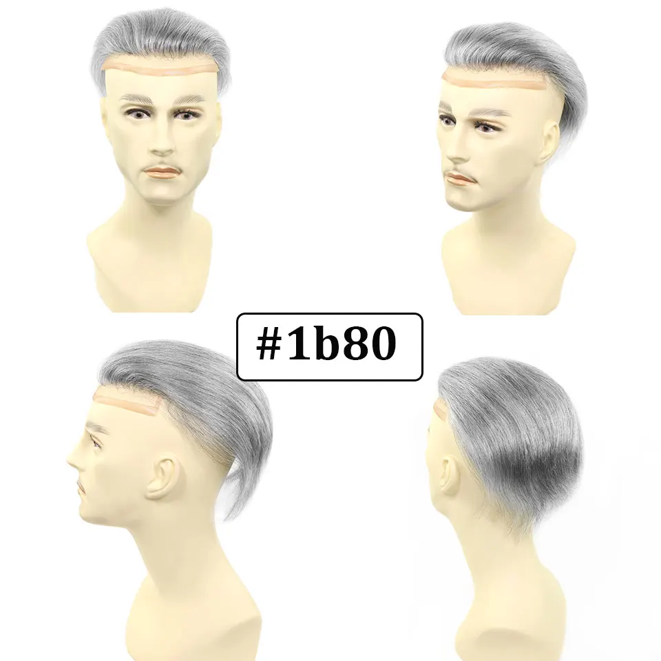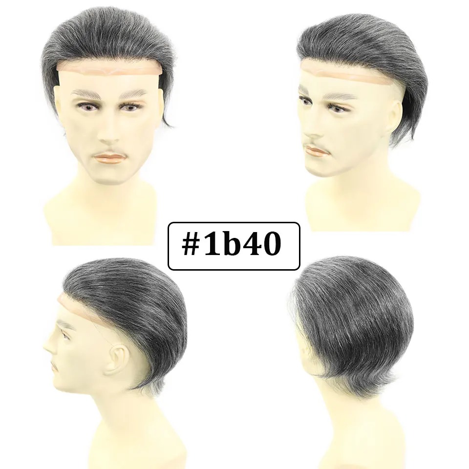 # 1b40/60/80 Cinza Sistema de Substituição de Cabelo Masculino Mono Pu Frente do Laço Peruca Masculina Peruca para Homem Cabelo Humano 130% Densidade.