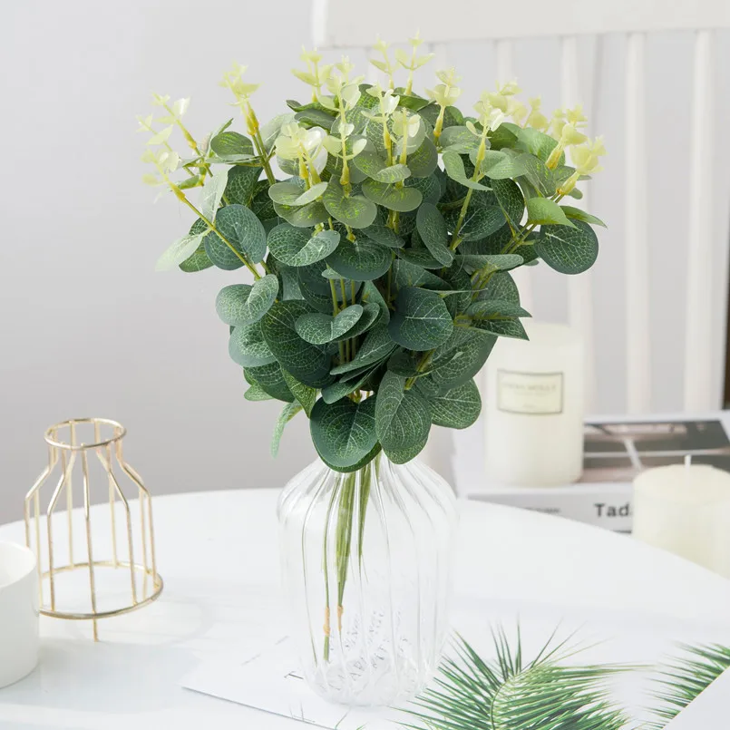 Início Decoração Plantas Artificiais 20 / 40 Pçs Plantas Artificiais Simulação Folhas de Eucalipto Jardim Ao ar Livre Proteção UV Casa Vasos Decoração.