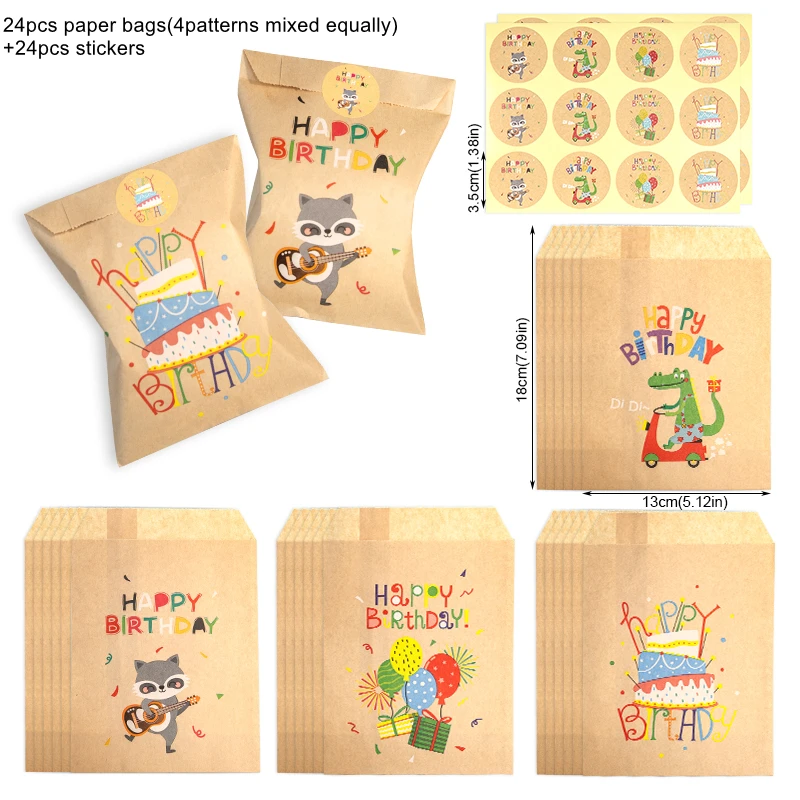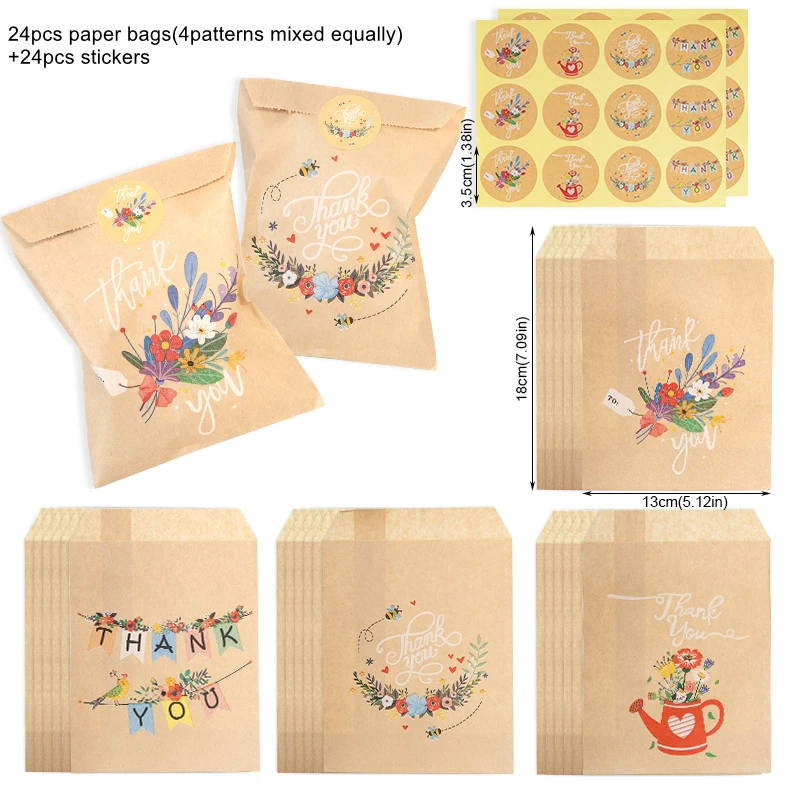 Qty: 24pcs Sacos de Papel + 24pcs Adesivos