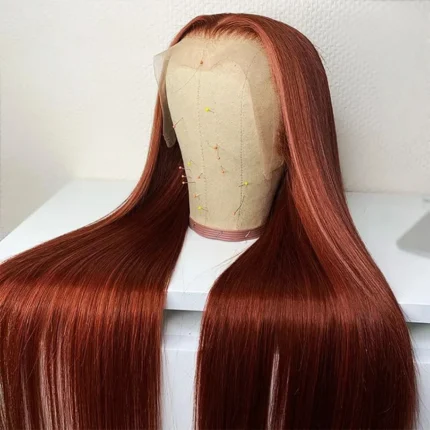 Cor do Cabelo: Perucas de Renda Retas Castanhas Avermelhadas, Perucas de Renda Frontal 13×4, Cabelo Humano para Mulheres Negras