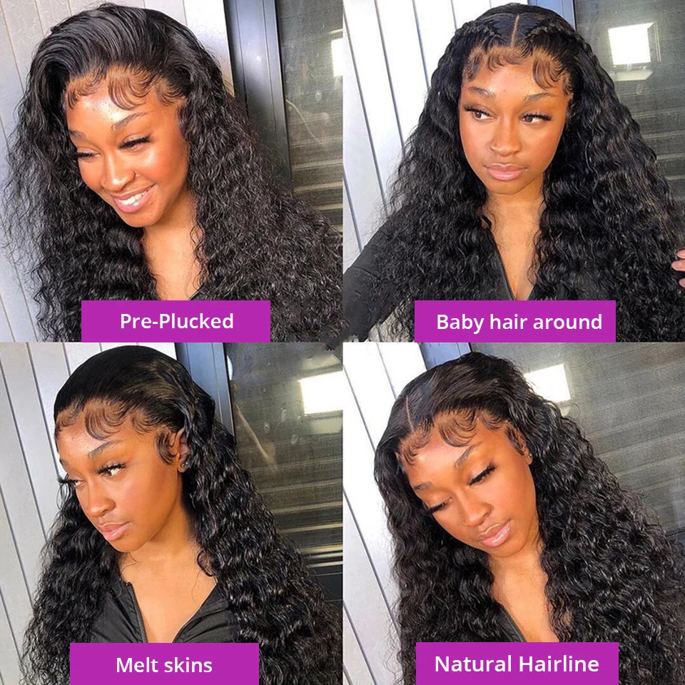 30 40 46 Polegada Peruano 13×4 13×6 Onda Profunda Frente do Laço Perucas de Cabelo Humano Água Encaracolado Peruca Frontal do Laço do Cabelo Humano para Mulher Pré Arrancado.