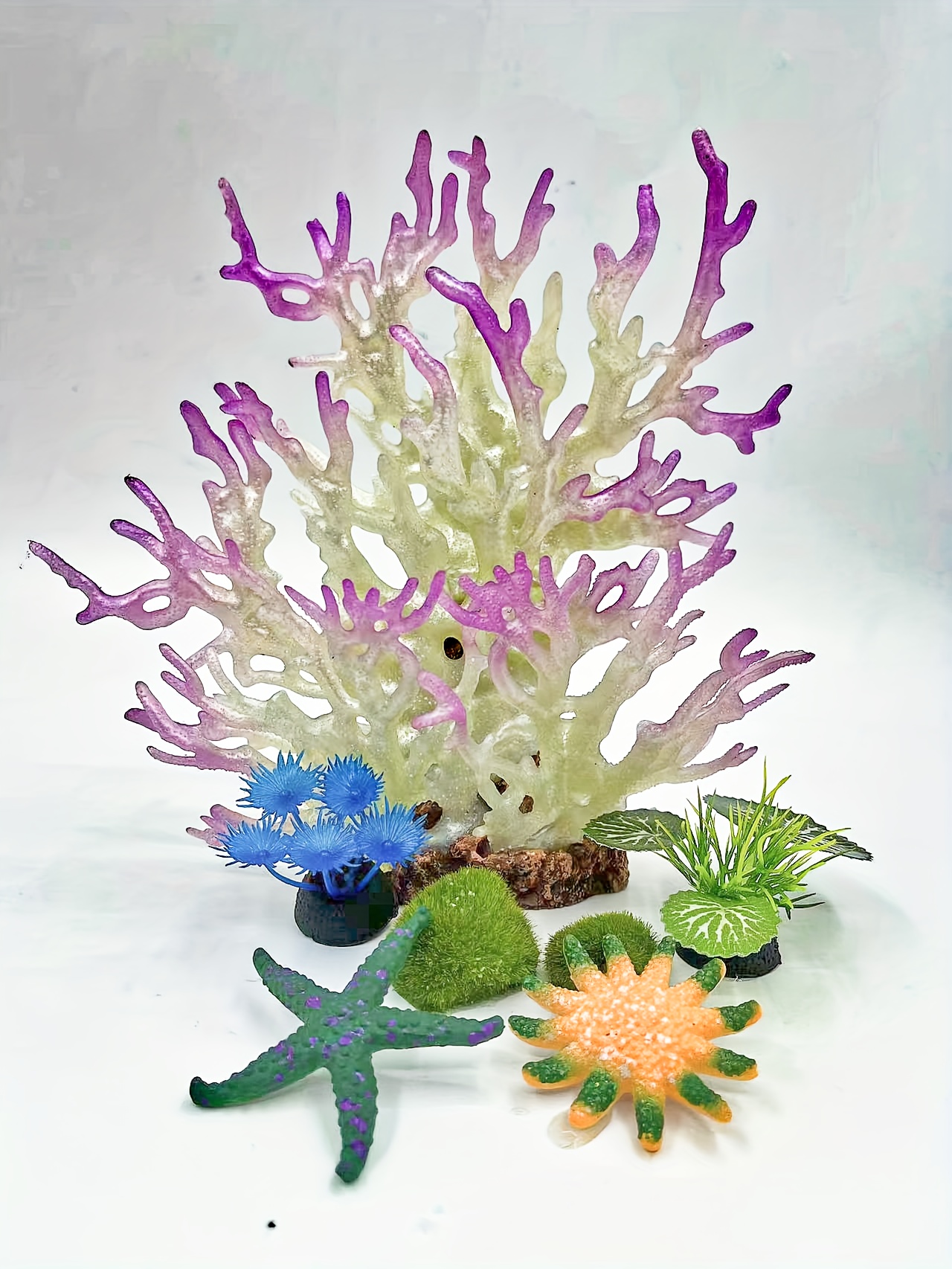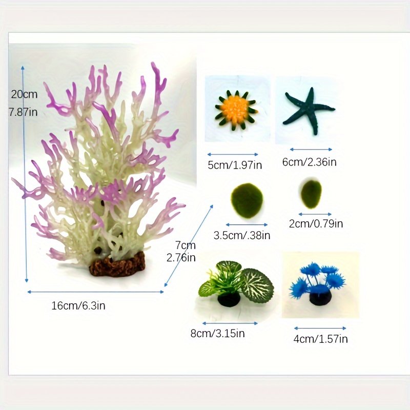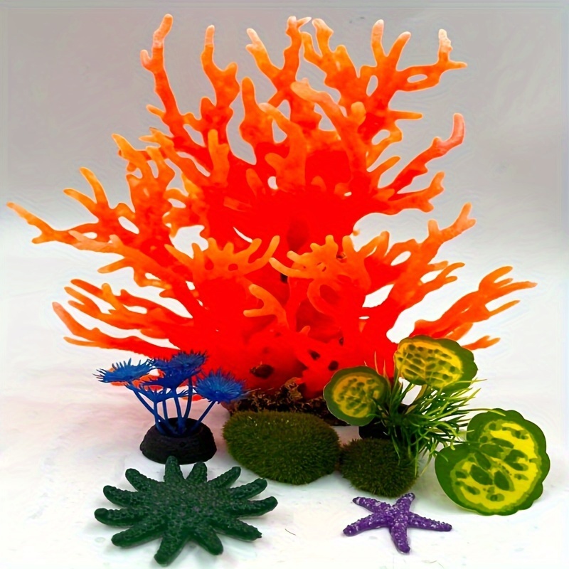 Enfeite de Coral Artificial para Aquário Com 7 Peças, Decoração Individual para Aquário Artificial.