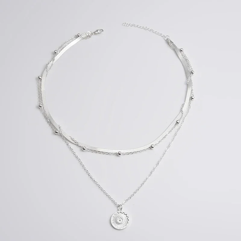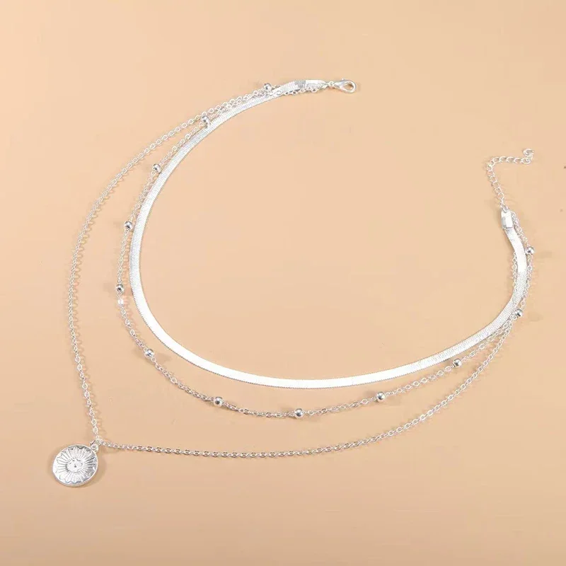 Colar Simples Com Camada de Prata: Colar Fino de Três Camadas 925