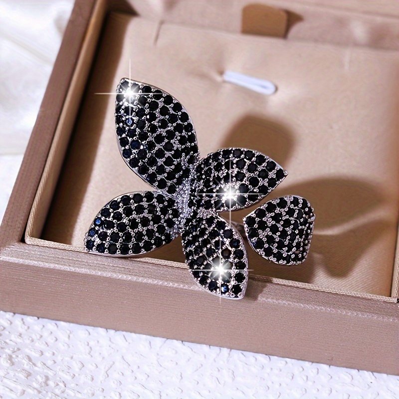 Início Vestuário e Acessórios Bijouterias Anel Boêmio Com Quatro Folhas e Flores 3d – Joia Unissex Brilhante para Homens e Mulheres, Anel Elegante para Uso Casual ou Formal, Acessório Formal | Estética Doce | Design Complexo, Joia Brilhante.