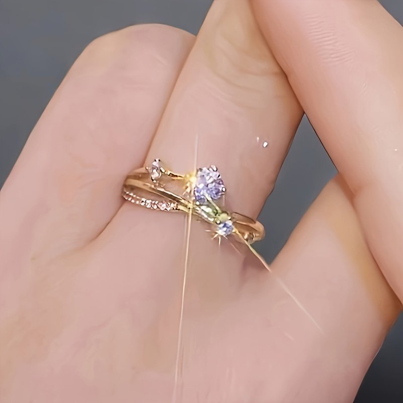 Anel Feminino Ajustável de Alta Qualidade Banhado a Ouro / Ouro Rosa, Com Design de Trajetória Cósmica e Brilho Planetário. Anel Feminino de Cobre Com Zircônia Cúbica, Joia Luxuosa.