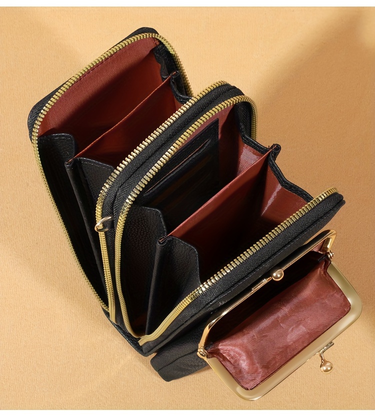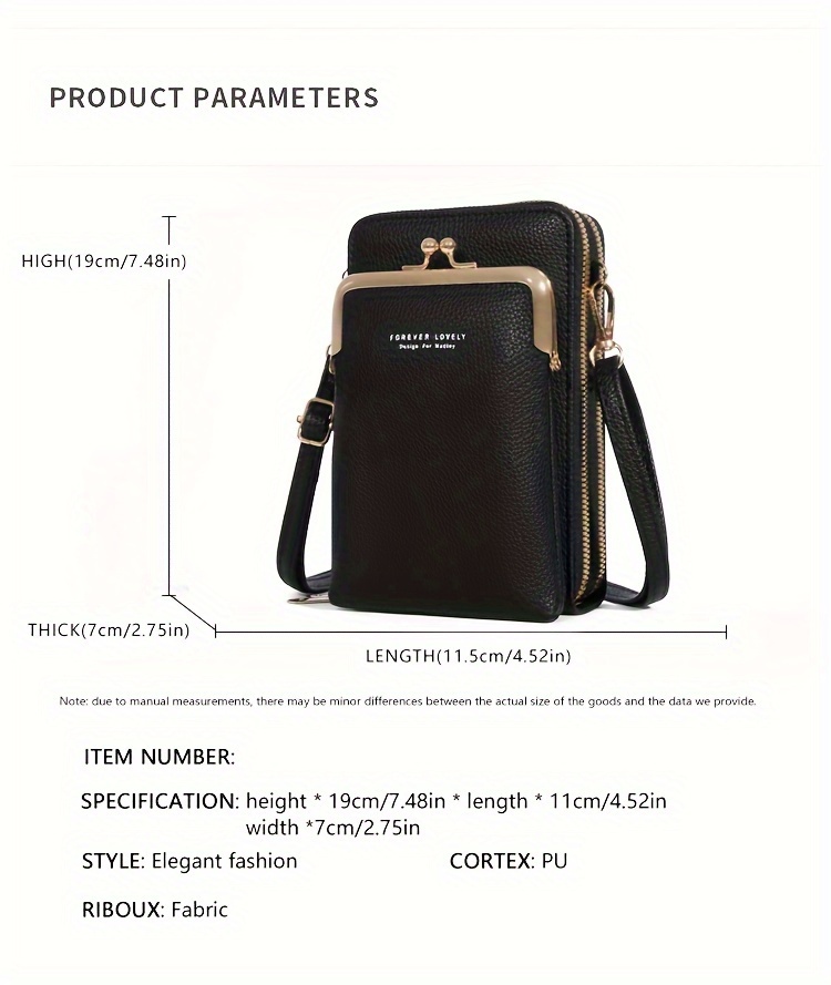 Bolsa Tiracolo Feminina Weiluola Acolchoada Mini - Alça Ajustável, Vários Compartimentos e Fecho de Zíper, Com Forro de Poliéster, Preta para Uso Diário, Bolsa Tiracolo Pequena, Acessório de Uso Diário, Acessório Elegante. R$ 50,59