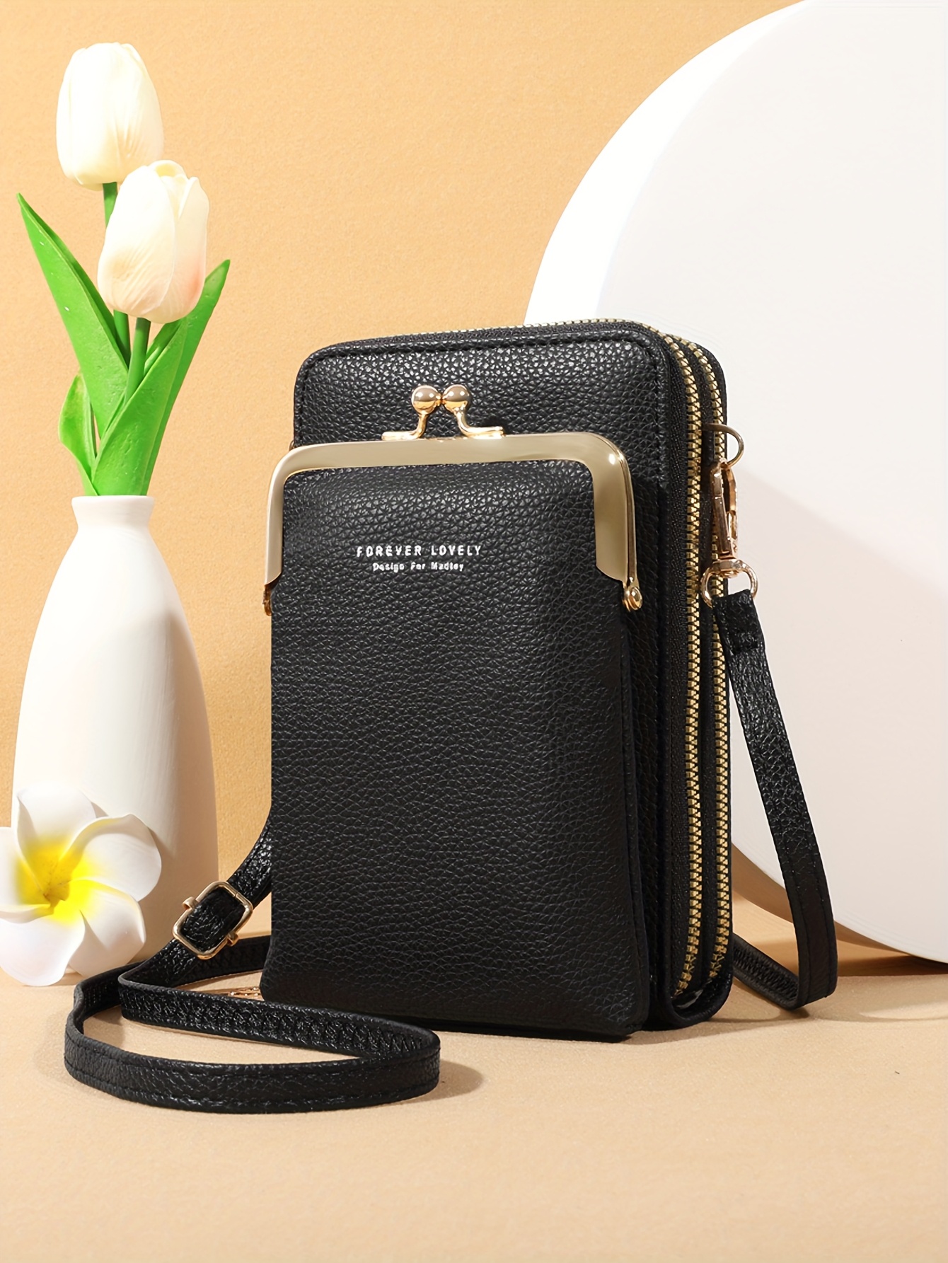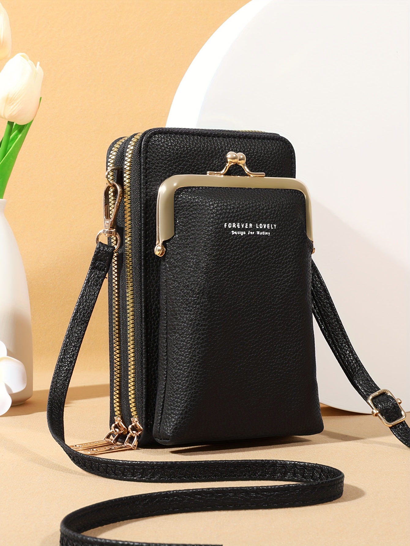 Início Vestuário e Acessórios Malas e Bolsas Bolsa de Ombro Diagonal Preta Com Fecho de Zíper e Inspiração Vintage – Alça Ajustável, Bolsos Com Zíper, Forro de Nylon, Porta-celular e Cartão, Acessório de Moda, Bolsa de Inspiração Vintage, Bolsa Com Zíper.