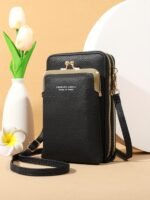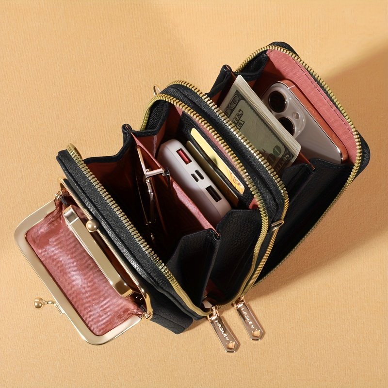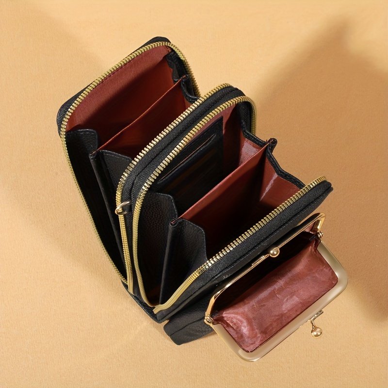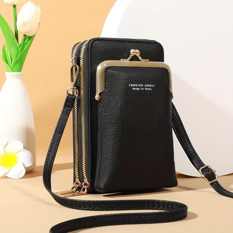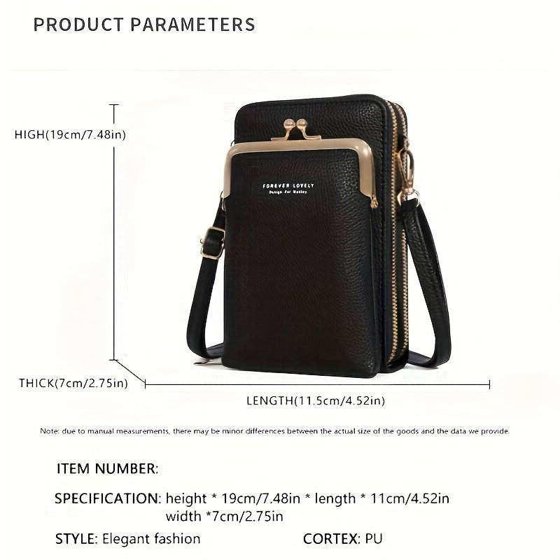 Bolsa Tiracolo Feminina Weiluola Acolchoada Mini - Alça Ajustável, Vários Compartimentos e Fecho de Zíper, Com Forro de Poliéster, Preta para Uso Diário, Bolsa Tiracolo Pequena, Acessório de Uso Diário, Acessório Elegante. R$ 50,59