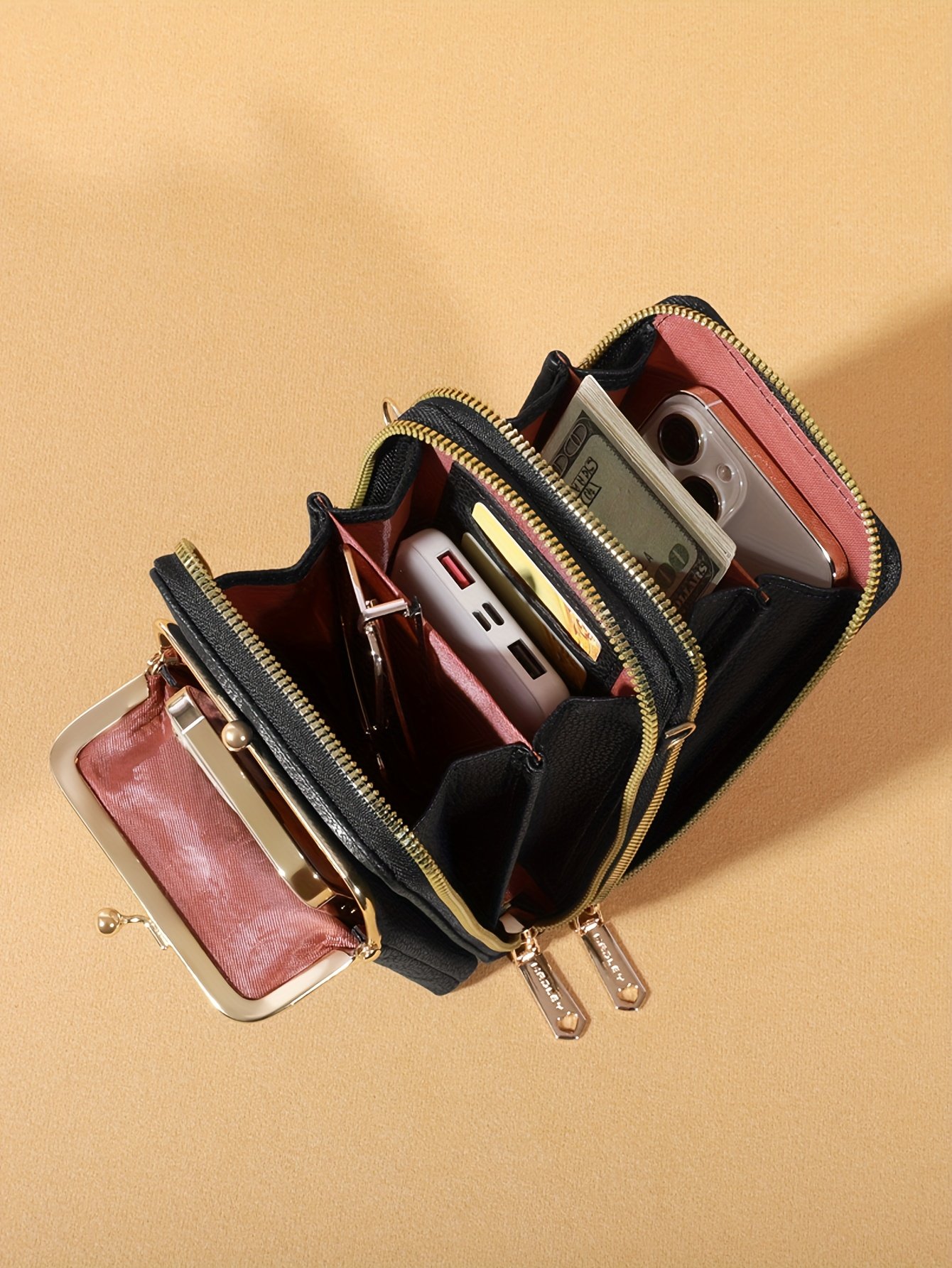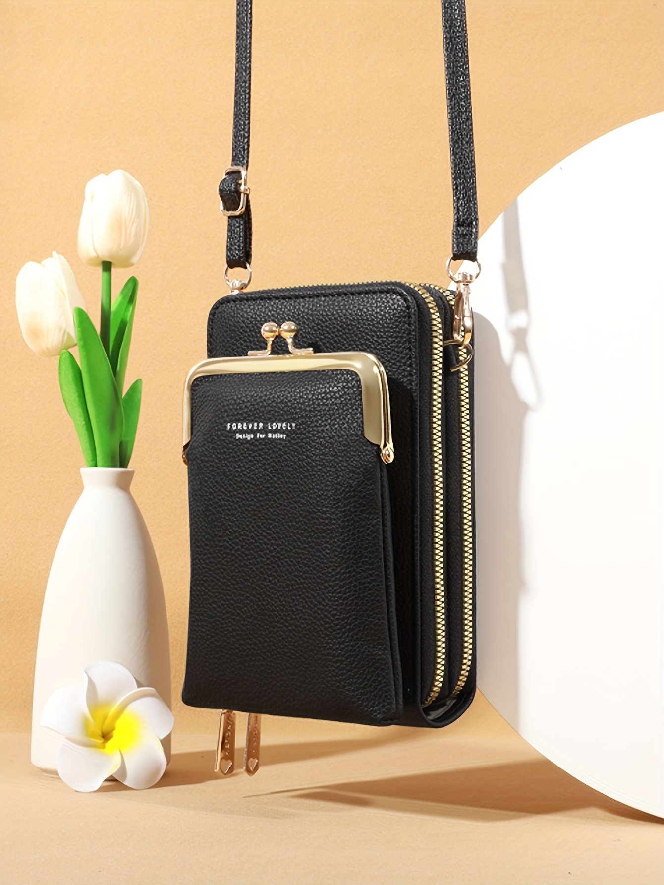Início Vestuário e Acessórios Malas e Bolsas Bolsa de Ombro Diagonal Preta Com Fecho de Zíper e Inspiração Vintage – Alça Ajustável, Bolsos Com Zíper, Forro de Nylon, Porta-celular e Cartão, Acessório de Moda, Bolsa de Inspiração Vintage, Bolsa Com Zíper.