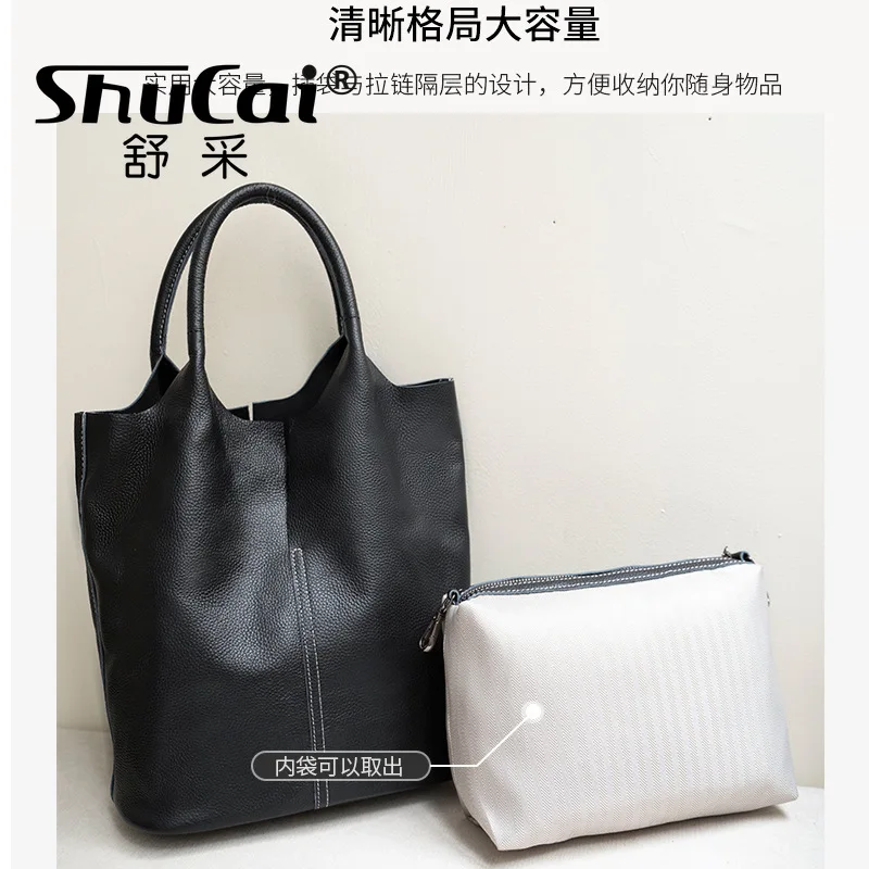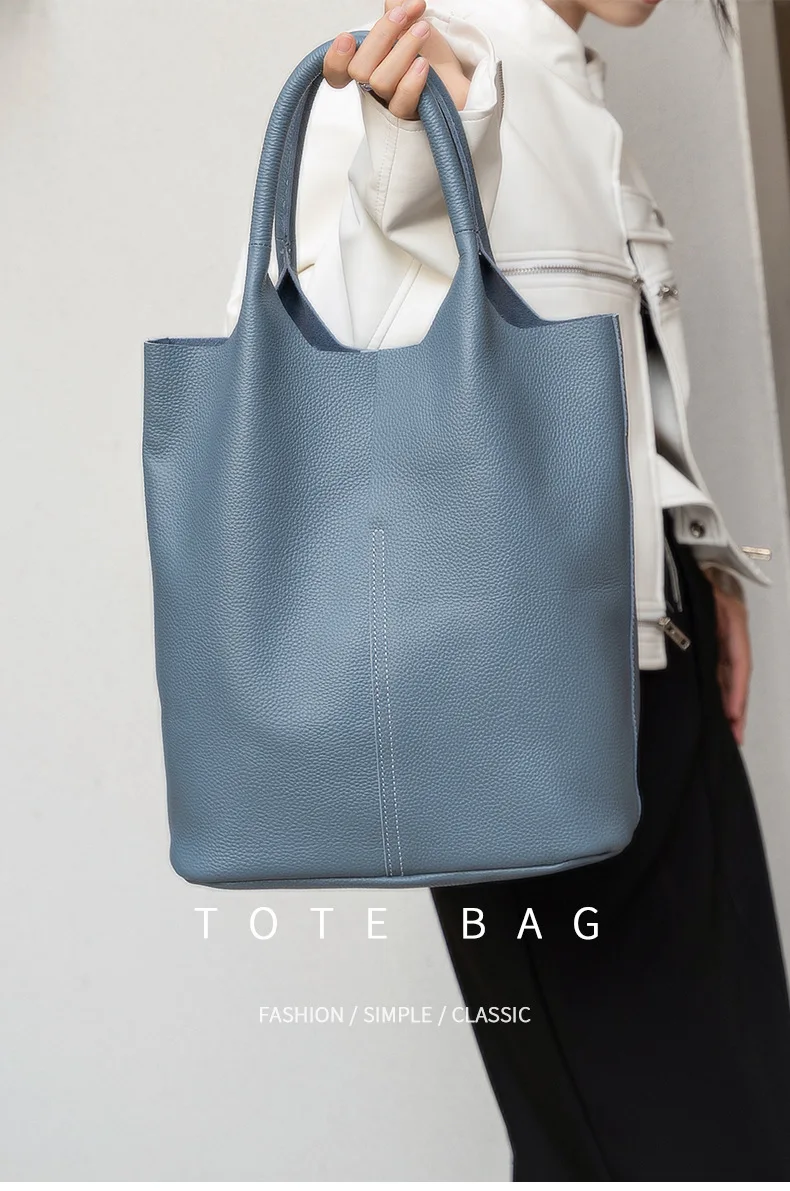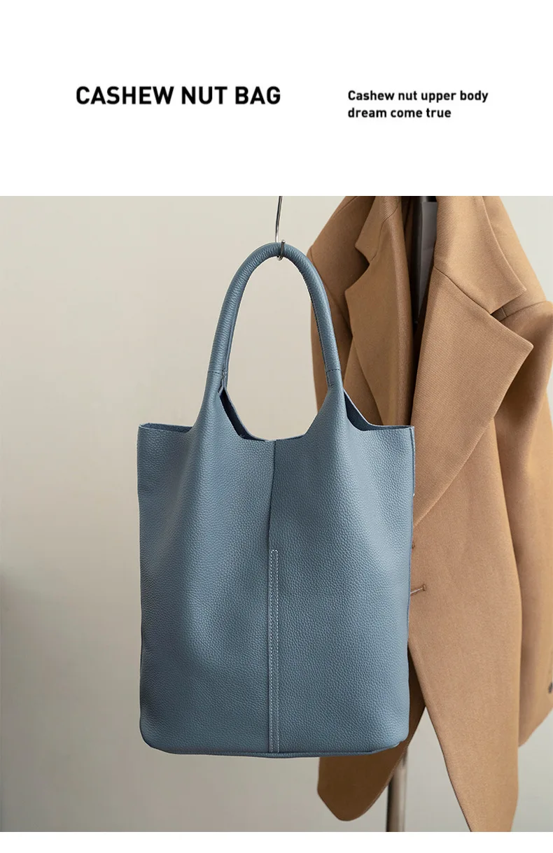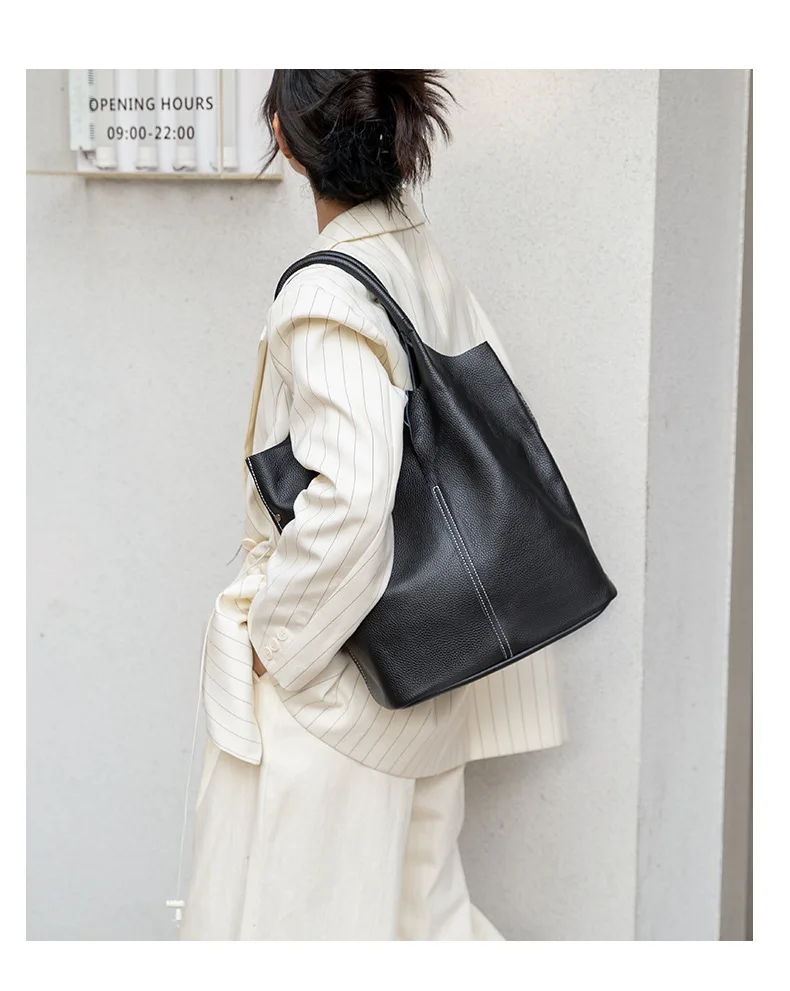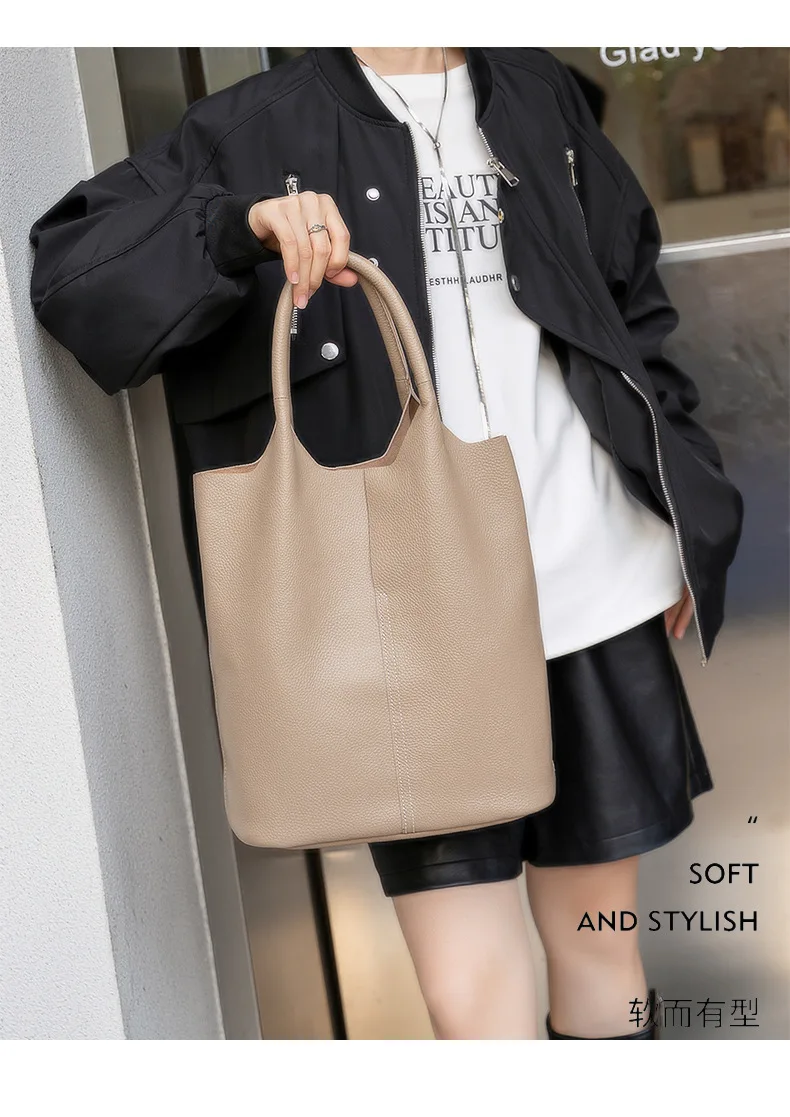 Bolsa de Ombro Feminina Grande, Design Moderno e Casual, Couro Genuíno Macio, Bolsa Estilo Sacola de Grande Capacidade.