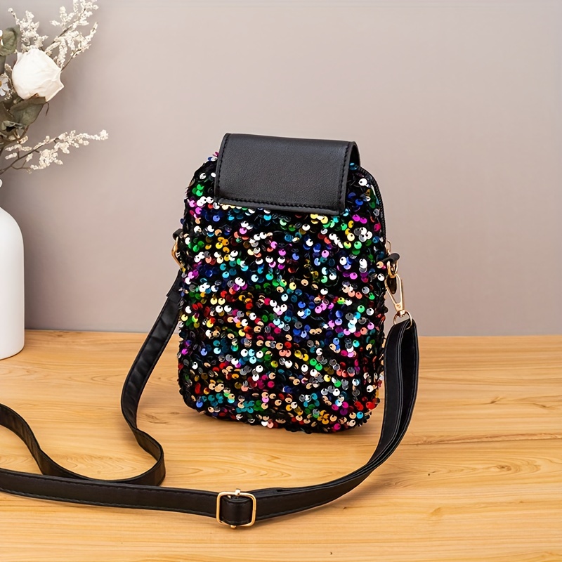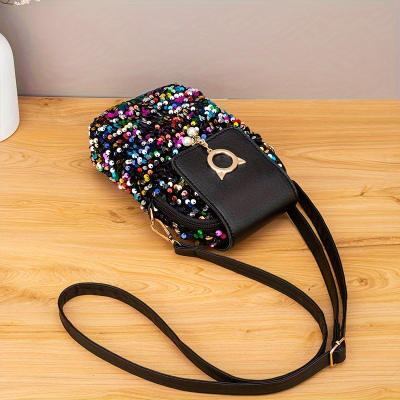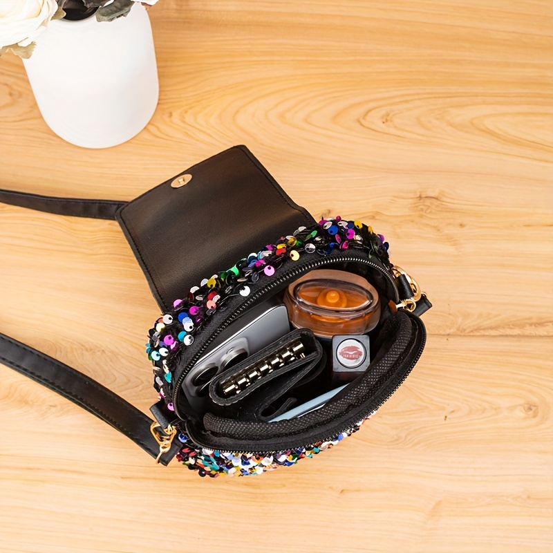 Bolsa Feminina Design Moderno e Casual, Tiracolo Com Lantejoulas, Bolsa de Ombro Leve de Poliéster, Com Alça Ajustável e Intercambiável, Fecho de Fivela, Zíper.