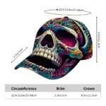 Boné de Beisebol Hip-Hop Com Estampa de Caveira (1 Unidade) – Design Exclusivo de Estilo Urbano, Tamanho Ajustável, Estampa Moderna, Acessório Esportivo, Acessório de Moda.