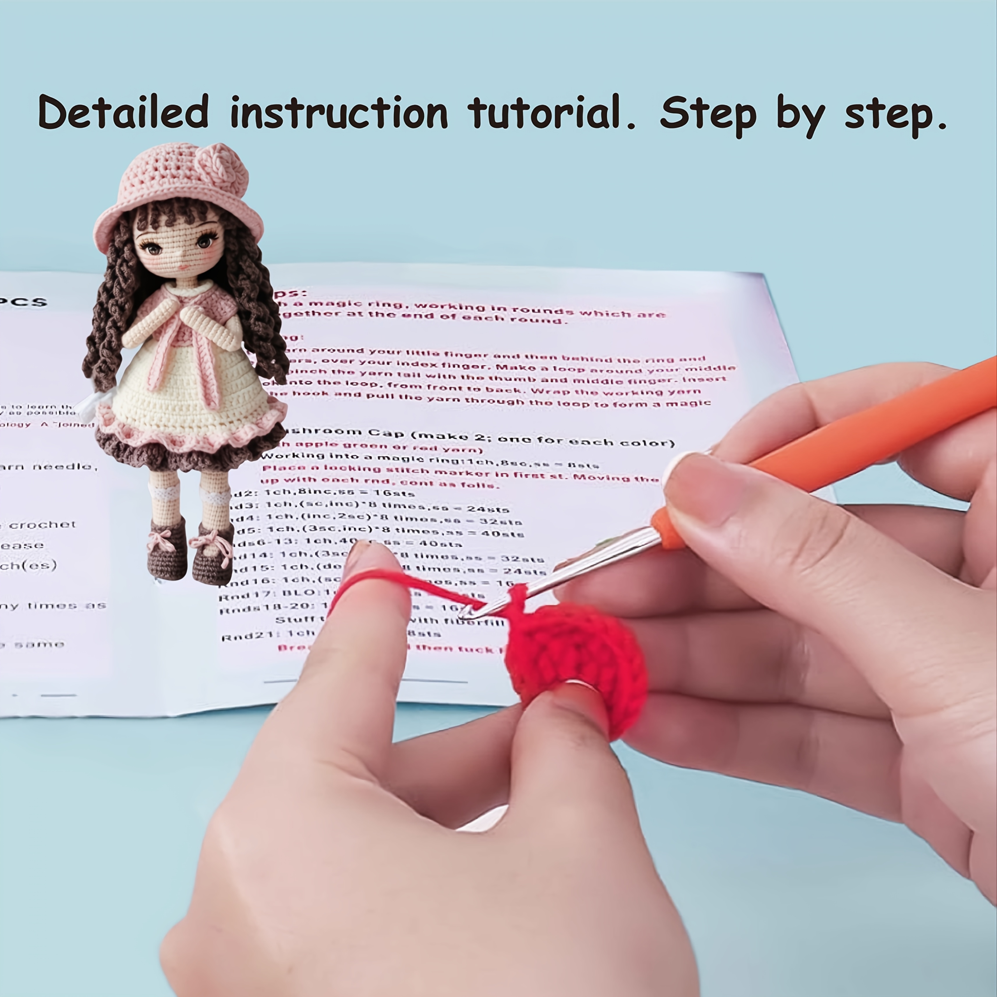 Boneca c/ Chapéu e Saia para Menina – Kit Completo de Crochê. Fio de Alta Qualidade