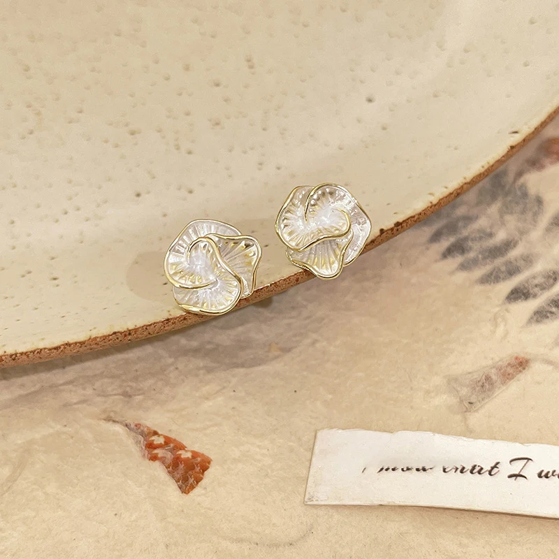 Brinco de Camélia Delicado p/ Mulheres, Design de Flor Exclusivo, Brincos Brancos de Temperamento, Joias Diárias.